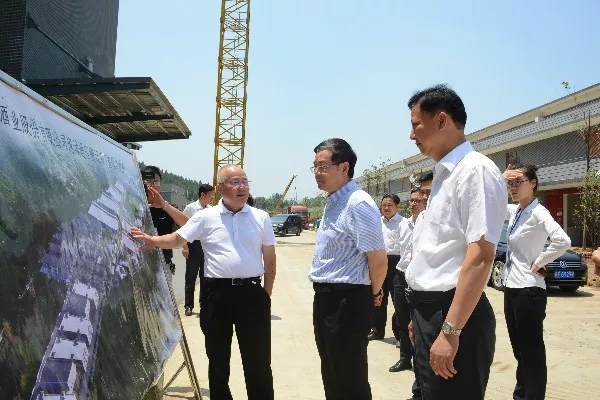 6月11日,省经信委主任牛弩韬一行调研口子产业园建设情况。市委书记、市人大常委会主任黄晓武,市委常委、秘书长李加玉,副市长胡亮,公司董事长徐进等陪同调研。